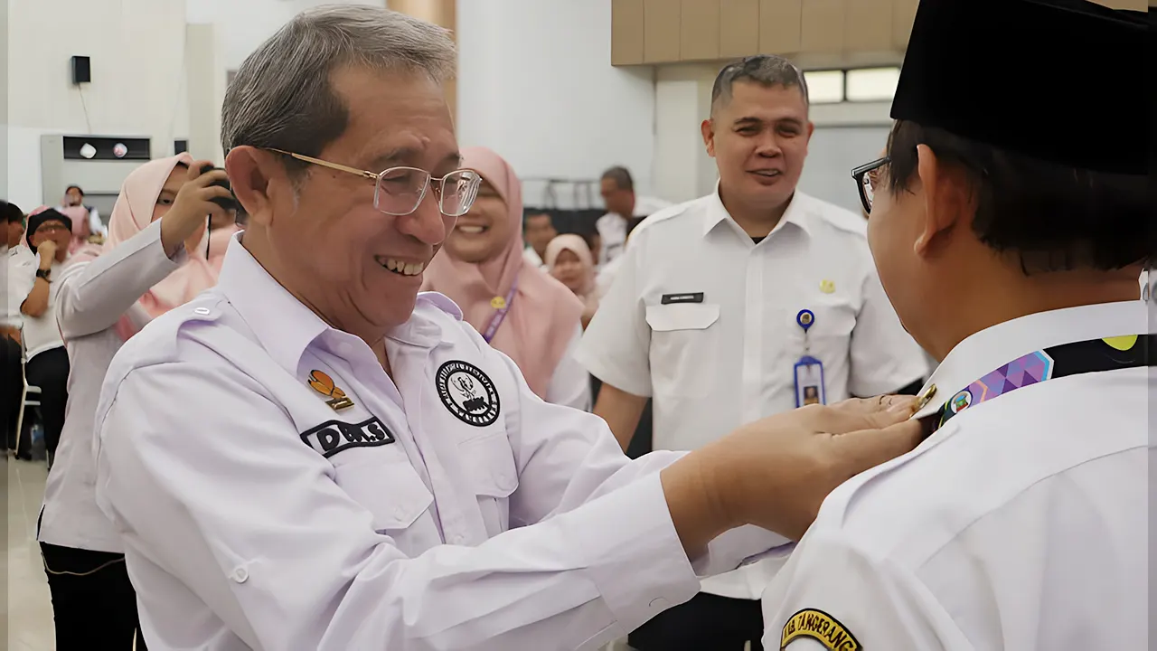 Ketua BNK Kabupaten Tangerang, Dedy Sutardi, menyematkan pin anti-narkoba kepada peserta sebagai simbol komitmen dalam pencegahan penyalahgunaan narkotika.