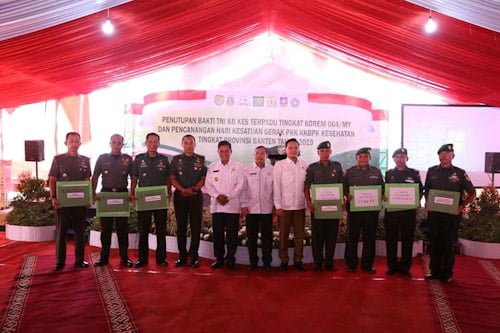SERANG, (BN) – Danrem 064/MY, Kolonel Inf Widiyanto, hadiri acara Bhakti TNI KB-kes Terpadu dan Penanganan Hari Kesatuan Gerak PKK KKBPK Kesehatan tingkat Provinsi Banten di Kampung Jagarayu, Kelurahan Gelam, Kecamatan Cipocok Jaya, Rabu (20/11/2019).