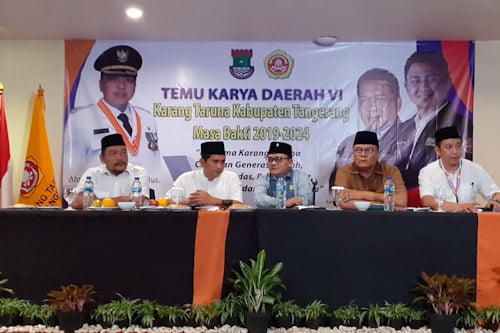 TIGARAKSA, (BN) – Meski minus kehadiran Bupati Tangerang dan pejabat Dinsos, Temu Karya Daerah (TKD) Karang Taruna Kabupaten Tangerang, versi Madroni, keukeuh tetap dihelat. TKD diadakan di hotel Ara, Legok, Rabu, (18/12/19).