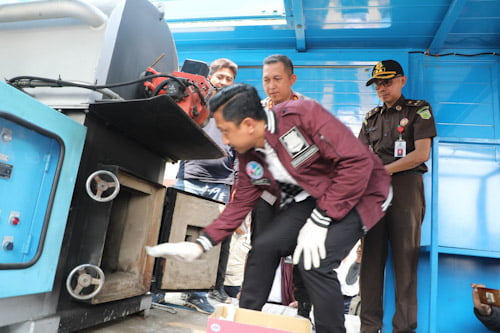 TANGERANG, (BN) – Barang bukti narkoba jenis shabu-shabu yang merupakan hasil pengungkapan Satuan Reserse Narkoba Polresta Bandara Internasional Soekarno Hatta (Soetta), dimusnahkan. Pemusnahan dilakukan dengan cara dibakar menggunakan Inserator di halaman Polresta Bandara Soetta, Tangerang, Banten, Selasa (5/11/19).
