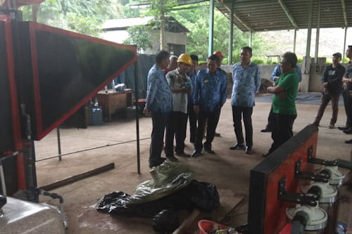 Selain meninjau lokasi, Syafrudin juga menyempatkan diri untuk melihat mesin karbon Win-CT Gen-3 yang di klaim mampu memproduksi asap cair, karbon, solar, dan bensin, bahkan mampu memproduksi air bersih dari bahan baku sampah.