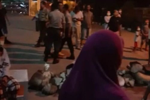 Dalam video berdurasi 1 menit 6 detik, puluhan warga mulai dari anak-anak hingga orangtua, terlihat bergumul di kegelapan malam.