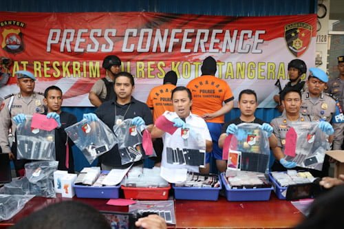 Kapolresta Tangerang AKBP Ade Ary Syam Indradi menjelaskan, para tersangka membeli telepon genggam jenis iPhone berbagai tipe rusak dari Singapura tanpa dilengkapi izin impor. Telepon genggam rusak itu, kata Ade, kemudian direkondisi dengan mengganti komponen dengan suku cadang bukan original iPhone.
